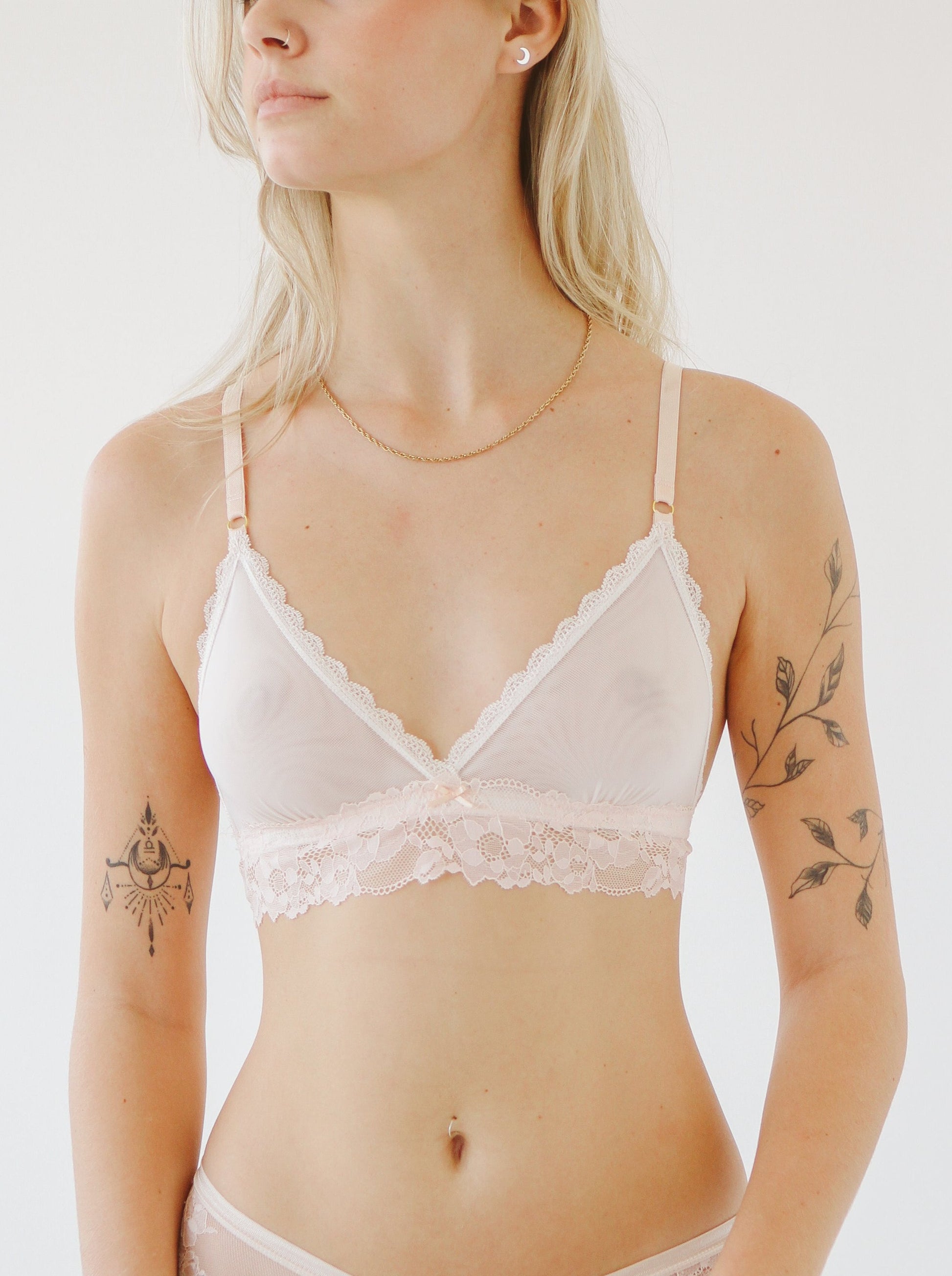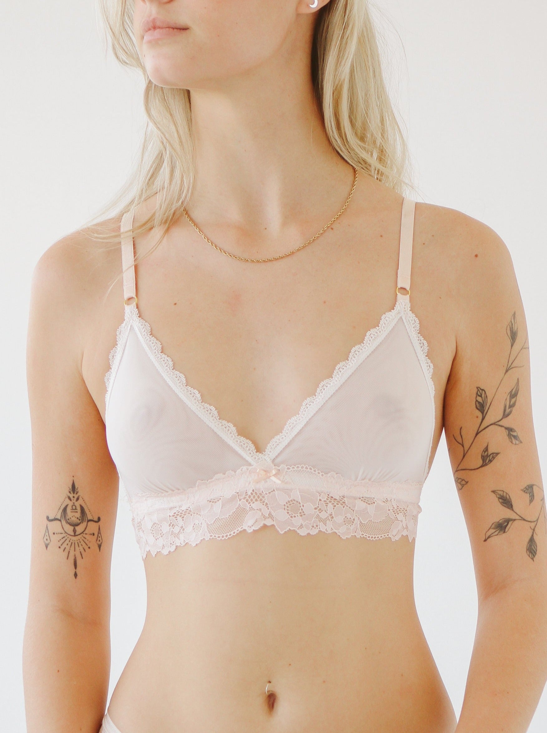 Soft, light & delicately seamless Lia. Made with luxuriously soft barely-there lace and lined for softness and comfort - She's a classic triangle bra that will become your everyday go to gal!