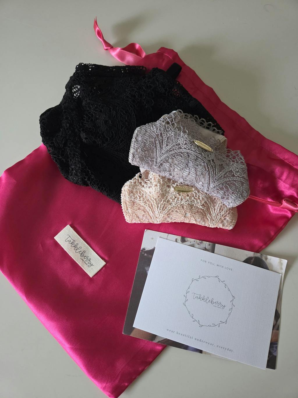 All Takkleberry orders come beautifully gift wrapped in a handmade panty bag. Fill in the below if you'd like us to include a personalised handwritten note from you...